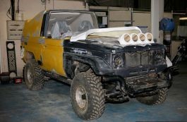 C’est donc Jean Rolland le spécialiste de la carrosserie polyester qui recarrossé le BJ 73. Celui-ci ressemble maintenant aux anciens proto “Dakar”. Toutefois avant, il a fallu redresser toute la carrosserie et en premier restaurer la baie de pare-brise. On suivi la réparation du hard top et la casquette.